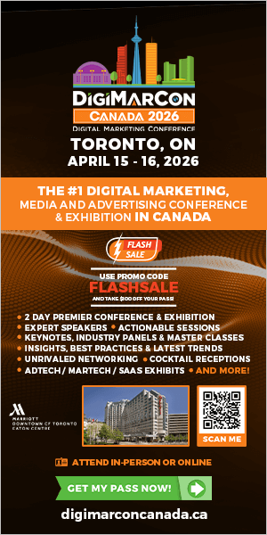 DigiMarCon Canada 2026 takes place from April 15th to 16th, 2026 at the Toronto Marriott Downtown Eaton Centre Hotel, Toronto, ON. Click here for travel details.