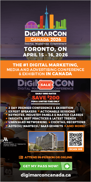 DigiMarCon Canada 2026 takes place from April 15th to 16th, 2026 at the Toronto Marriott Downtown Eaton Centre Hotel, Toronto, ON. Click here for travel details.